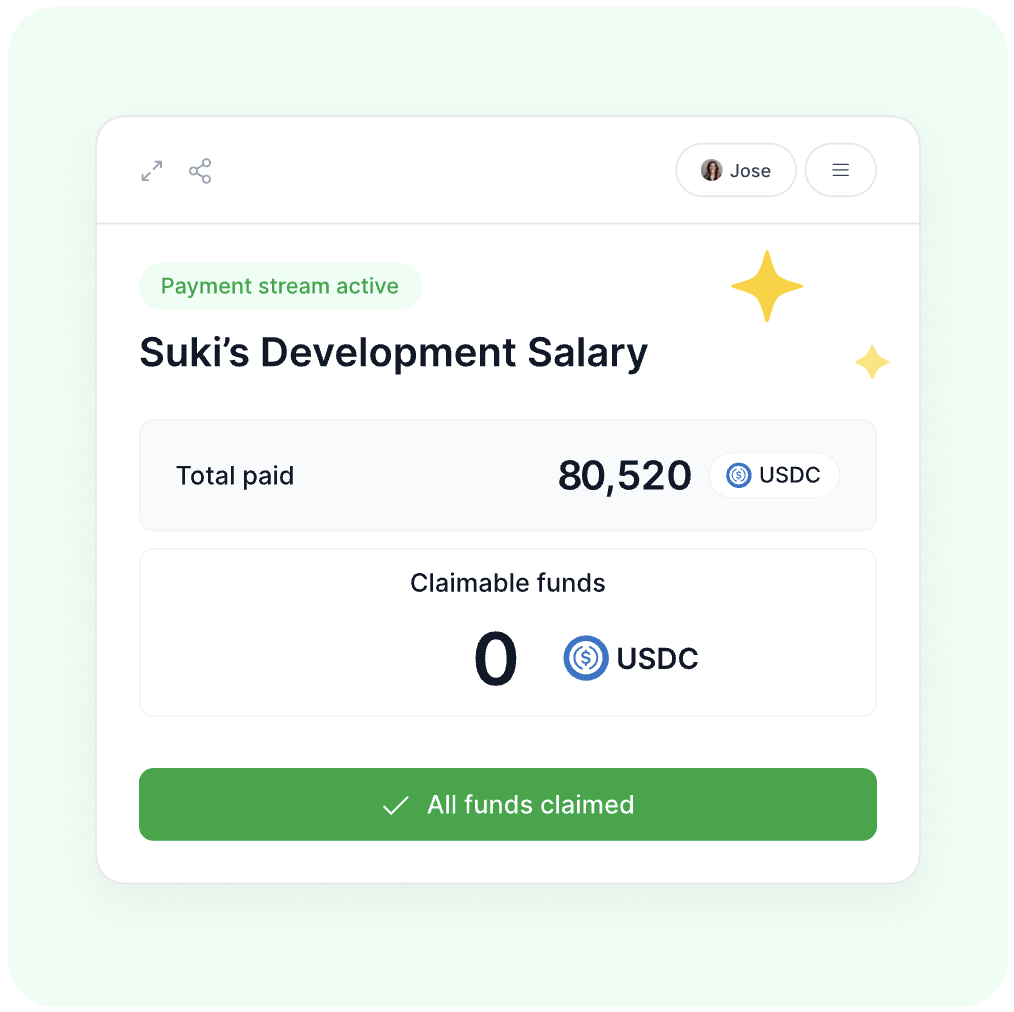 Set up continuous payments at agreed rates without upfront funding. Perfect for salaries, retainers, or recurring payments.