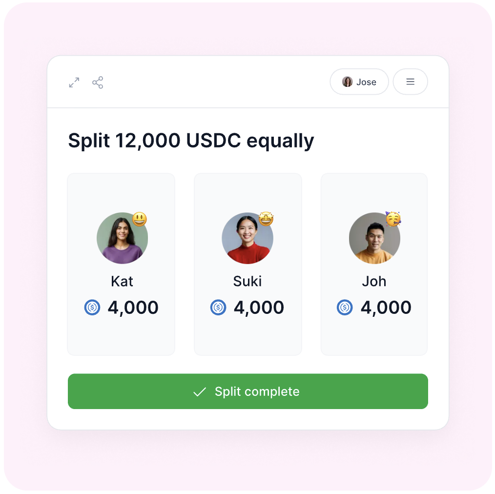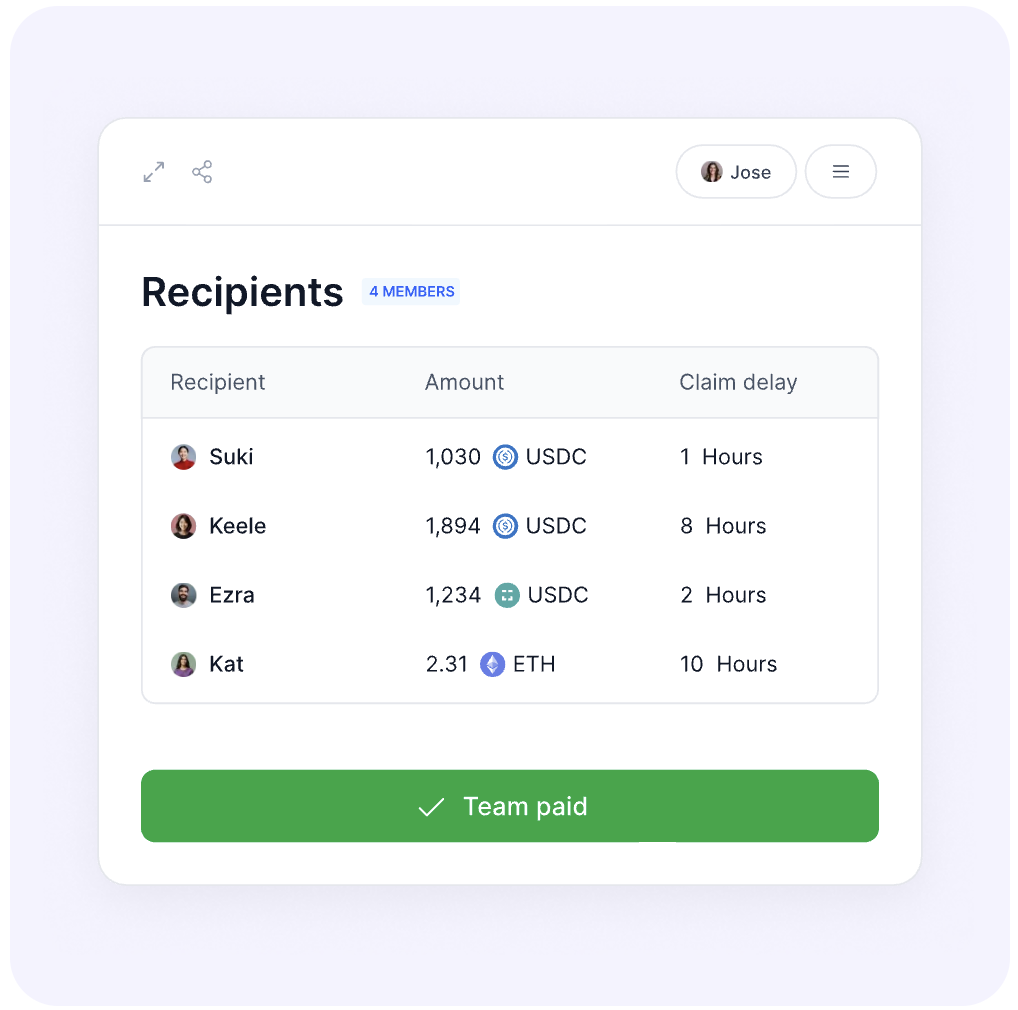 Easily divide a pot of funds between many recipients. Set up equal splits, custom percentages, or automatically allocate based on team reputation.